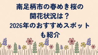 アウトドア情報 南足柄市の春めき桜の開花状況は?2026年のおすすめスポットも紹介 2026年の南足柄市の春めき桜の開花状況、おすすめスポットを紹介します。観光の参考にしてみてください。 2026.03.16 アウトドア情報