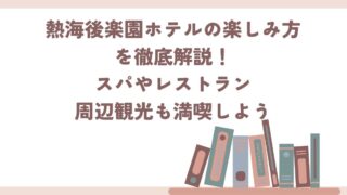 ホテル情報 熱海後楽園ホテルの楽しみ方を徹底解説!スパやレストラン、周辺観光も満喫しよう 熱海後楽園ホテルの楽しみ方を徹底解説。オーシャンスパFuuaや大浴場、食事、ワーケーション、花火大会まで、滞在を満喫するポイントを紹介します。 2026.03.21 ホテル情報旅行情報温泉情報
