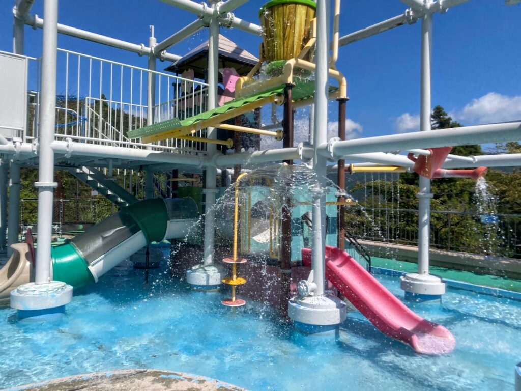 ここも子どもに大人気のエリア。小さなすべり台が2つあり、小さな子どもでも楽しめます。春~秋シーズンはバケツにたまった水が上からざぱーっと降ってくるのでオムツの赤ちゃんはちょっとびっくりしちゃうかも…。幼児~小学生くらいの子ならきっと盛り上がります!