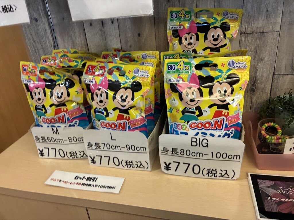 ユネッサンでは、水遊び用オムツの販売があります。